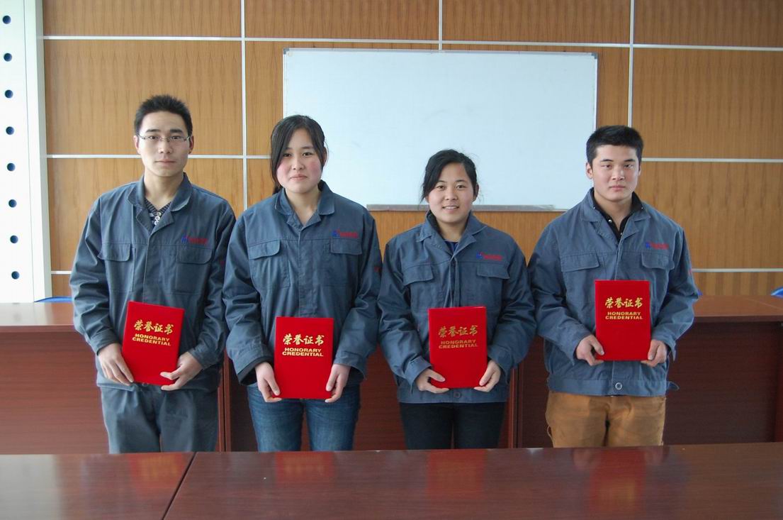近日,2010年度“泰安市岱岳区技术能手”名单公布,全区共有10名职工获此殊荣,我公司李海泉、朱倩倩、温玉敬、田志华(自左至右)四名员工名列其中。