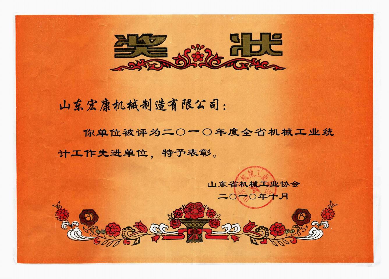 10月20日至22日,山东省机械工业统计信息工作会议在枣庄市滕州召开,我公司被评为“2010年度全省机械工业统计工作先进单位”。